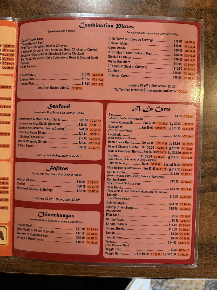 Guests can enjoy popular items like the Chile Verde or Chile Colorado Burrito, alongside casual bites like the deep-fried shrimp taco or classic enchiladas. The menu pairs well with refreshing beverages including Dos Equis Lager and Corona Extra, complementing the relaxed, family-friendly atmosphere.